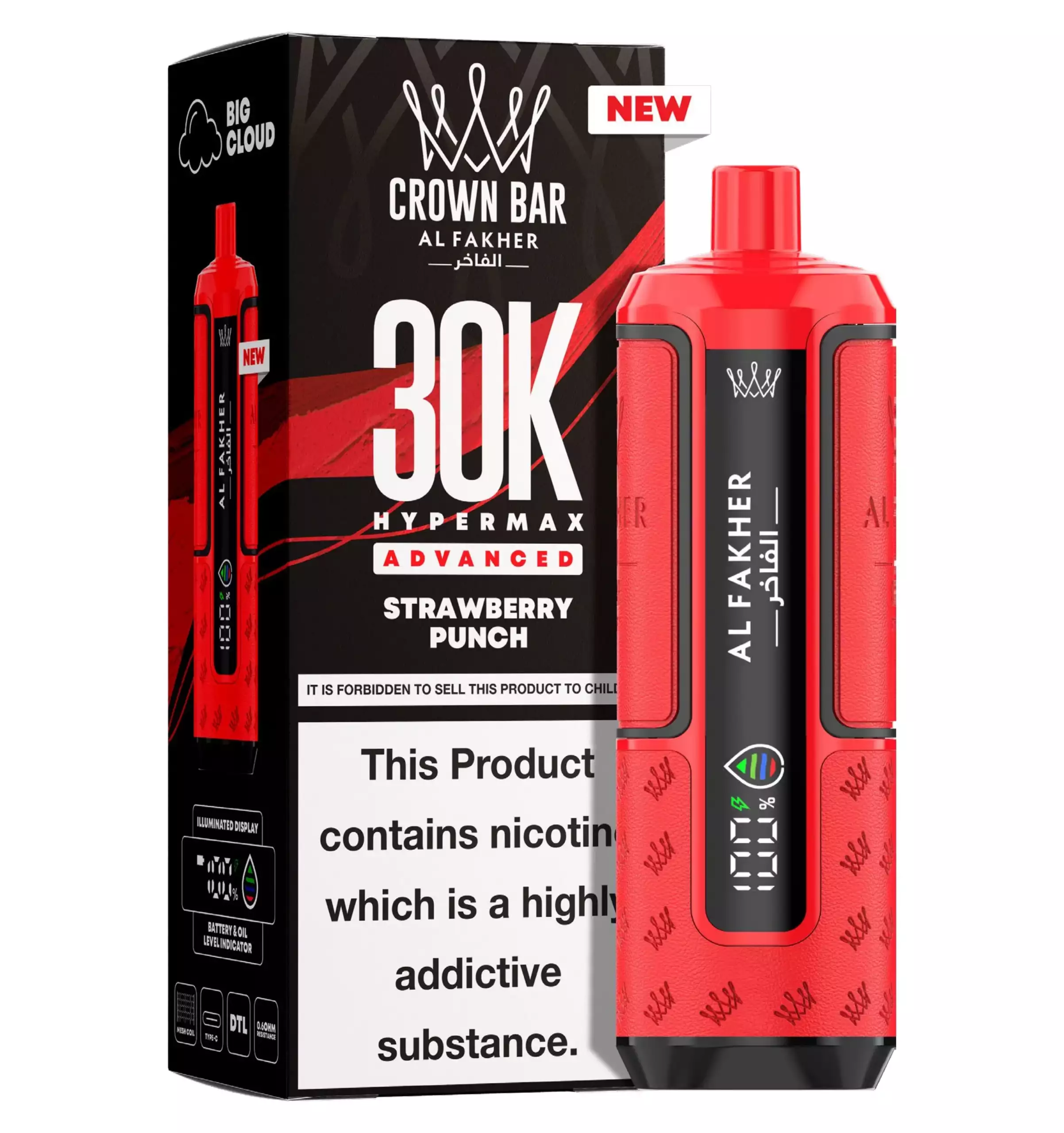 Puff Al Fakher Crown Bar 30K — 30 000 bouffées, coil mesh, recharge USB-C. La puff longue durée référence pour professionnels.